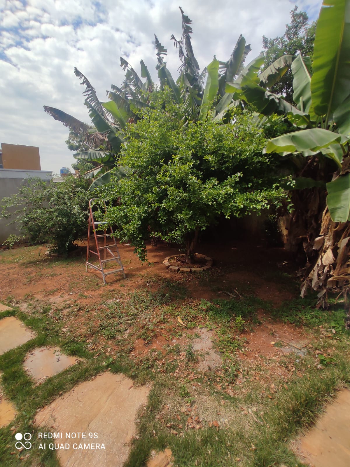 Entrada independente, portão eletrônico, jardim com árvores frutíferas.